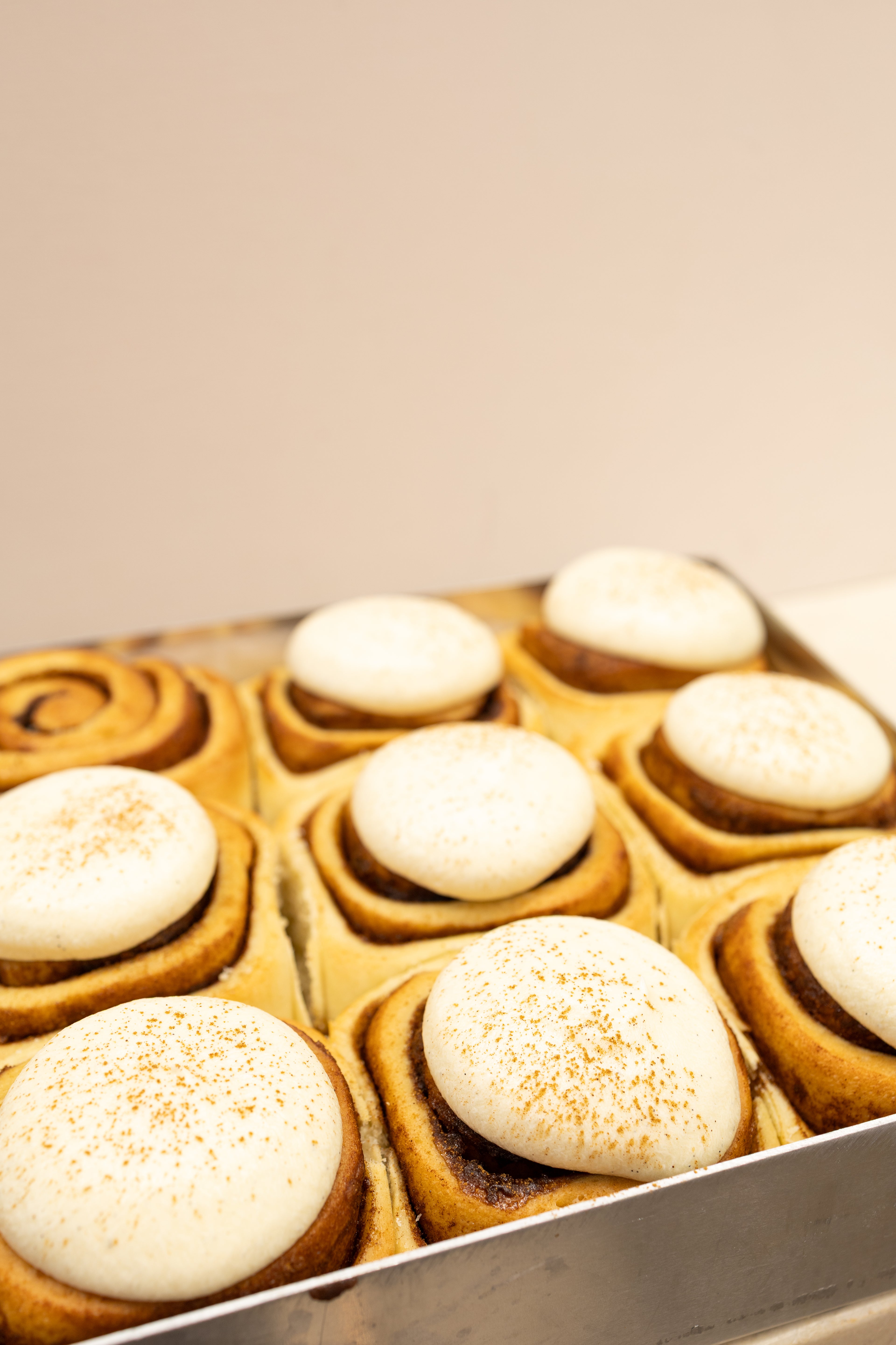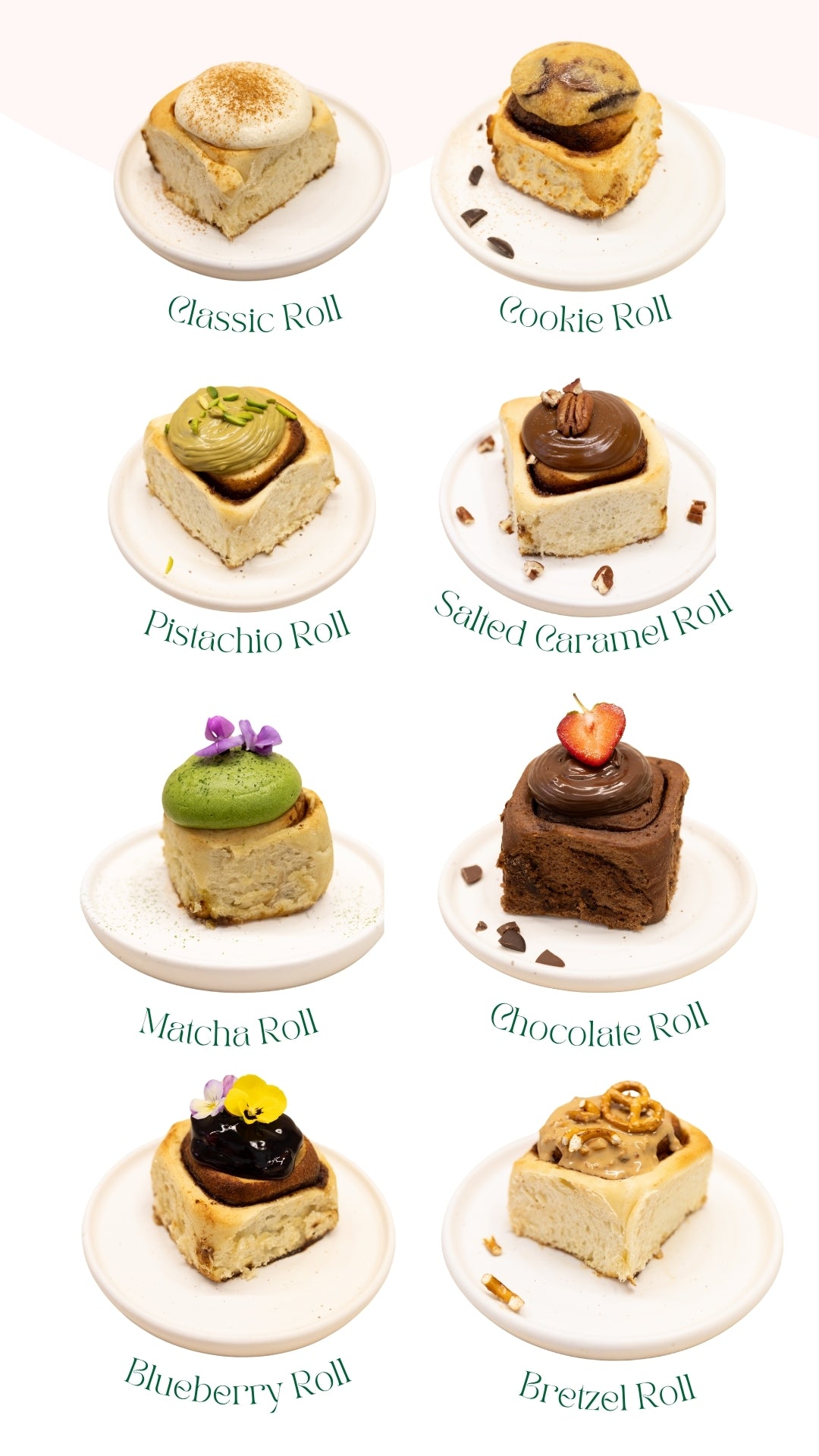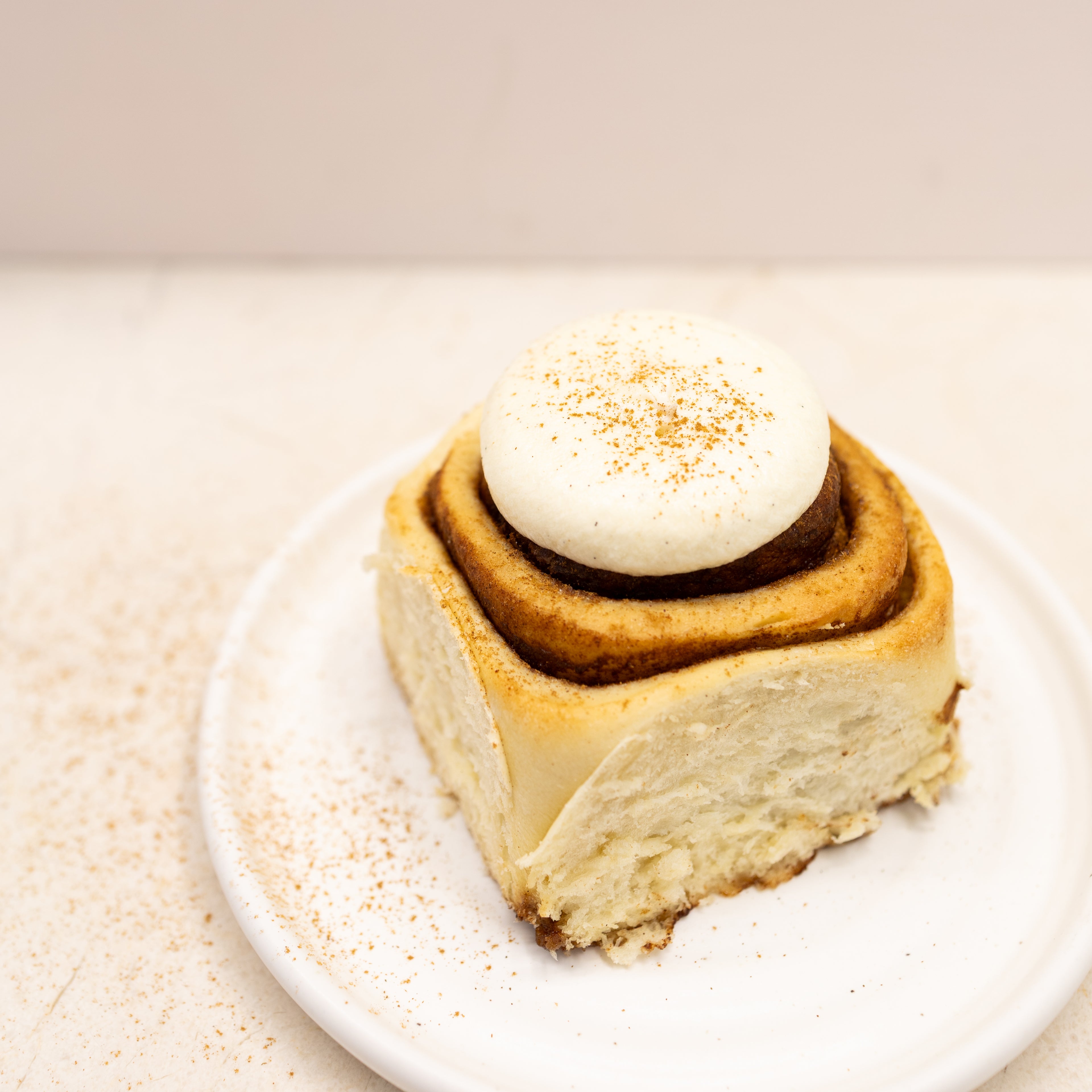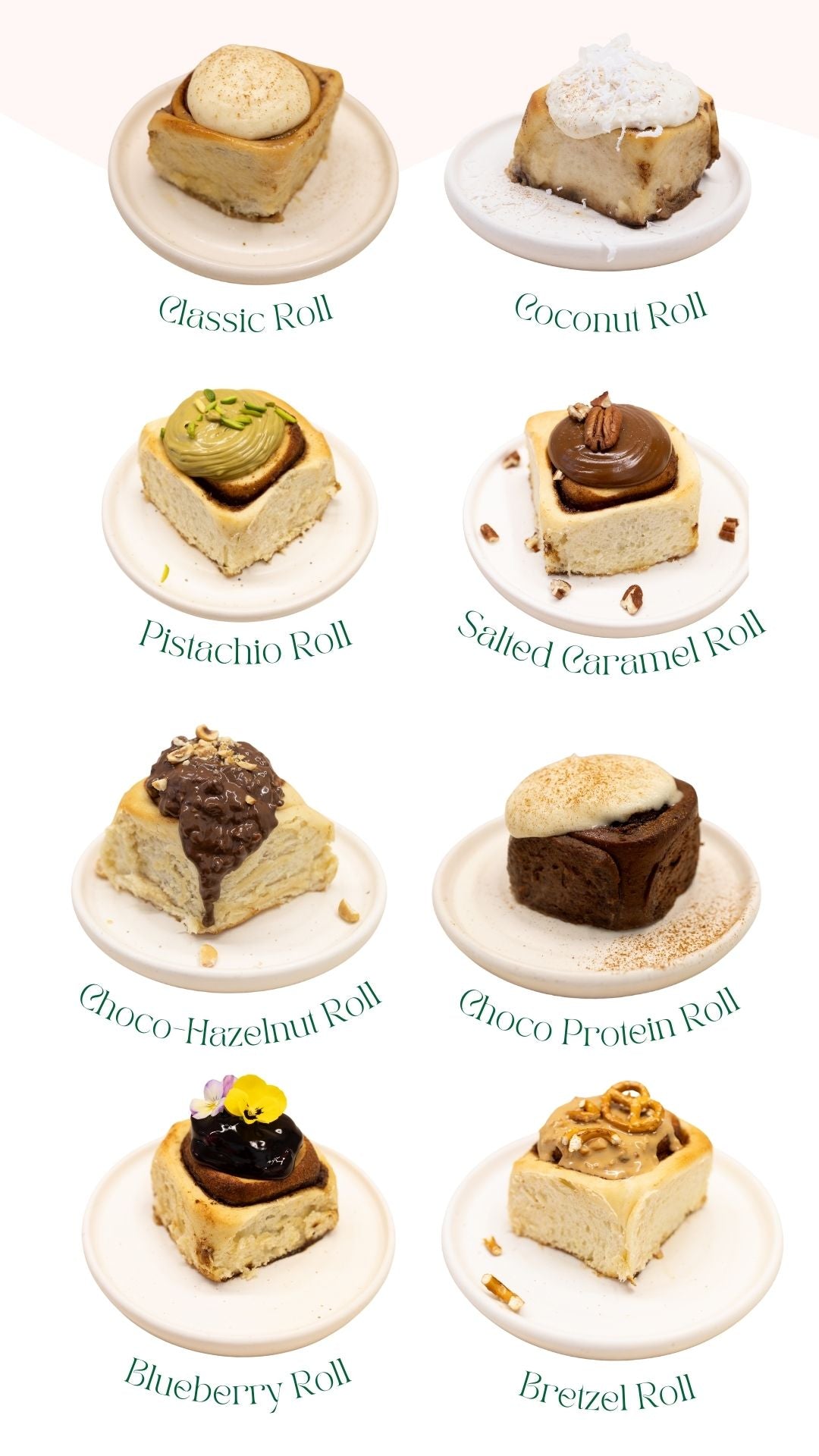 Our vegan cinnamon swirl with our signature vegan cream cheese glaze, raspberry or blueberry jam.